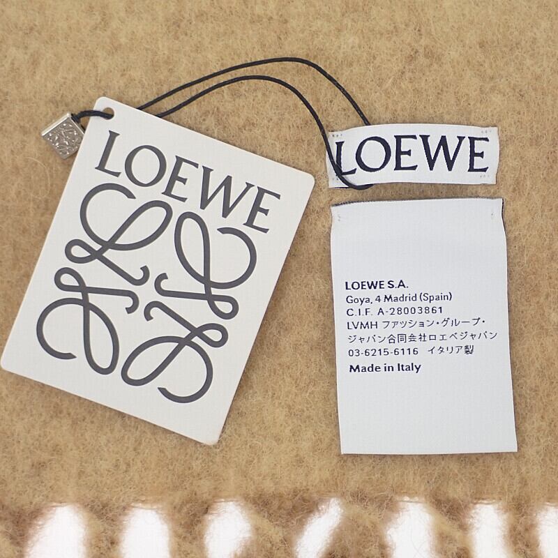 LOEWE アルパカ F655SS1X02 マフラー ウール レザー キャメル レディース
