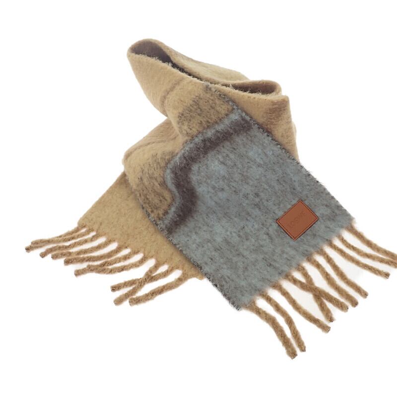 【LOEWE】LOEWE アルパカ F655SS1X02 マフラー ウール レザー キャメル レディース【小物】